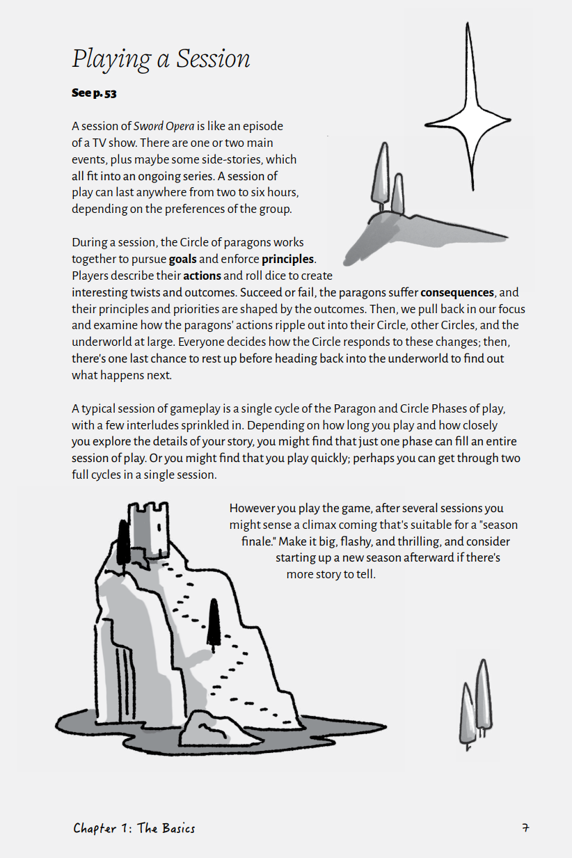 This PDF is an ashcan of Sword Opera. That means it’s playable, but barebones and incomplete. More art, better layout, even additional rules and guidance is all coming in a future, more polished release.